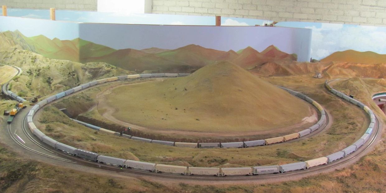 The focal point of the layout presents our rendition of the World Famous Tehachapi Loop, which was constructed by our resident NMRA AP credited scenery specialist Mike OBrien, to portray a very accurate presentation of the real Tehachapi Loop, by using Topographical and Google Earth measurements. The fairly large scene includes Sandcut, Caliente, the Tunnels and scratch built bridge..